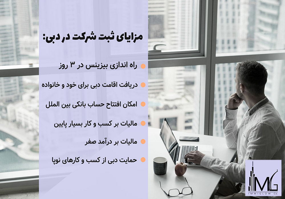 • منطقه آزاد دبی: راه اندازی شرکت در یک منطقه آزاد با مالکیت 100٪ ، مزایای مالیاتی و فرآیندهای تجاری ساده را ارائه می دهد. با این حال، ممکن است محدودیت هایی برای فعالیت در خارج از منطقه آزاد داشته باشید.